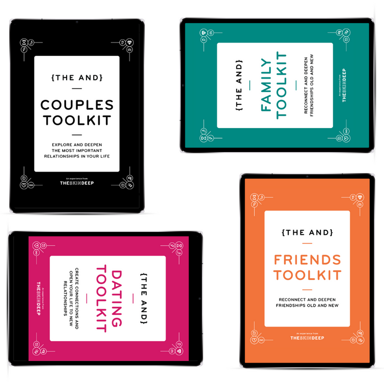 Unlock the power of connection and community with the all new {THE AND} Digital Toolkit Bundle II! With our four newest and incredibly designed toolkits - Dating, Couples, Family, and Friends - you'll have access to a curated collection of content from our community, including hand-picked inspiration moments from our globally loved videos, in-person icebreakers, and interactive tools to help you create incredibly meaningful conversations and experiences with almost anyone in your life!
