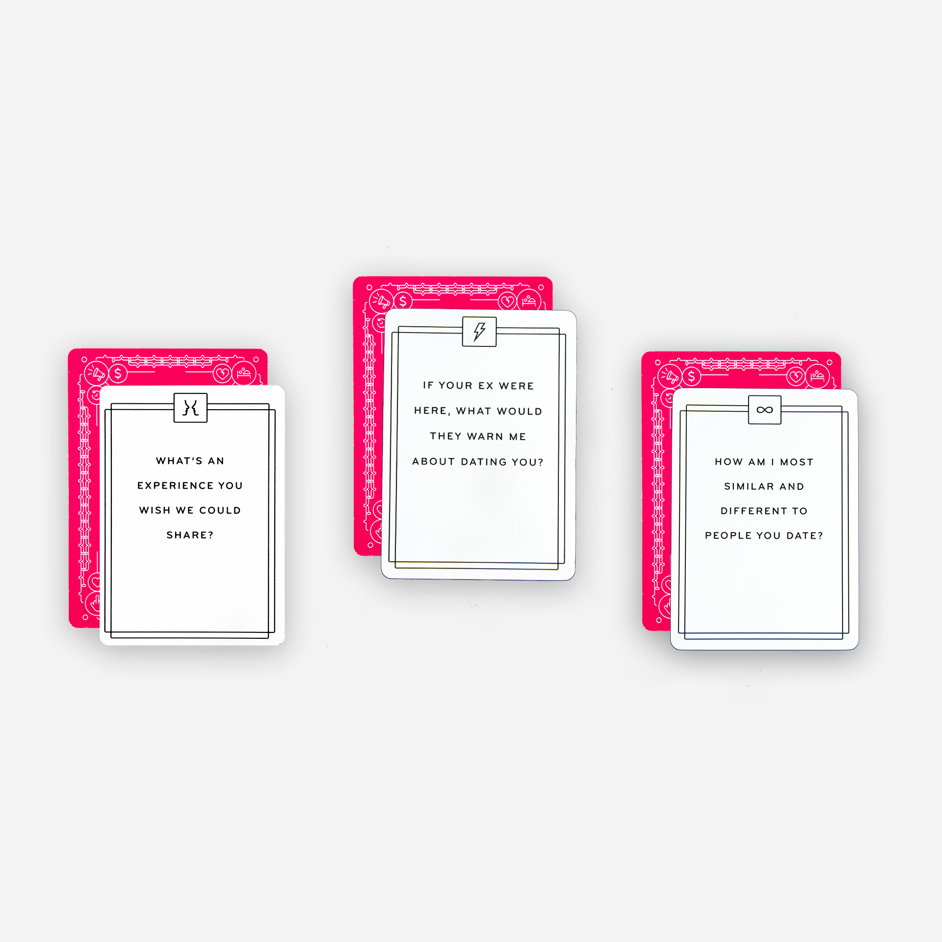 More than just breaking the ice, the Dating Edition cards lay the foundation for deep emotional resonance from night one. Let your guards down and connect in refreshingly authentic ways without fearing rejection.