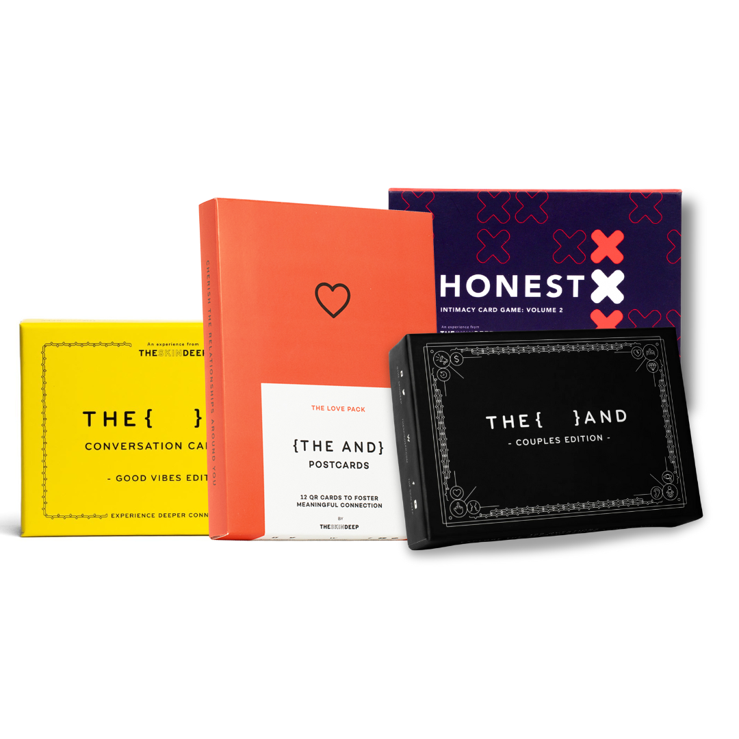 Looking to deepen your romantic bond through both heartfelt conversations and joyful moments of connection? {THE AND} Couples Edition Valentine's Bundle combines our most beloved tools for nurturing an exceptional relationship—one built on emotional intimacy, playful discovery, and the kind of vulnerability that brings partners closer together.