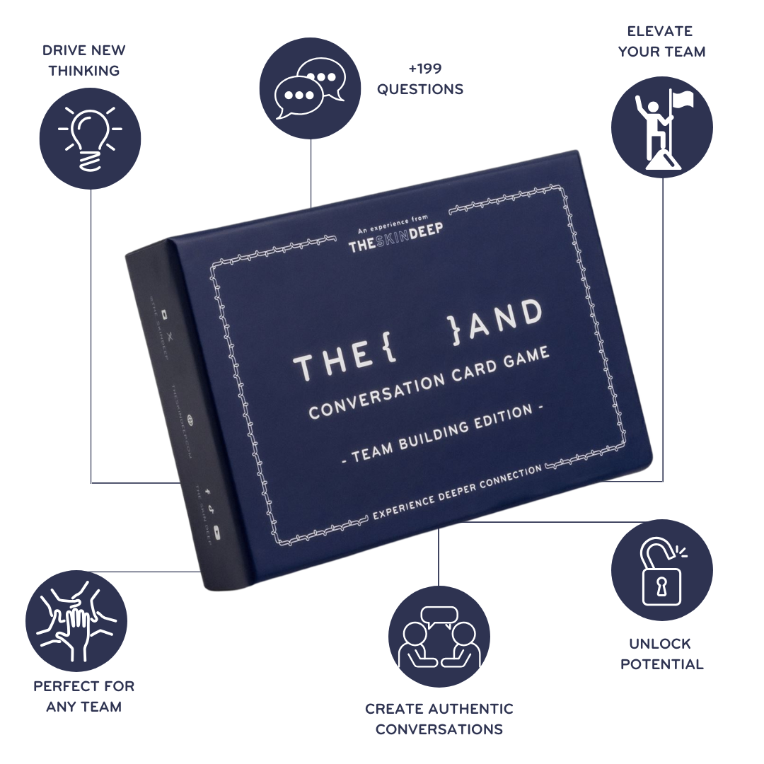 {THE AND} Team Building Edition is your solution. 199 powerful questions and prompts from the question masters at The Skin Deep that will inspire your team to explore what makes them a team, encourage them to have deeper conversations about their shared connections and goals, and strive to be the ultimate team, together.